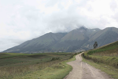 It’s perched on a mound atop a hill, with the valley sprawling in every direction around it, and Ecuador’s largest lake, Laguna San Pablo, stretching out on one side. There are many farm plots around, and one sees fields of maize, potatoes, tomatoes, and quinoa growing all over the place. It’s a beautiful spot.